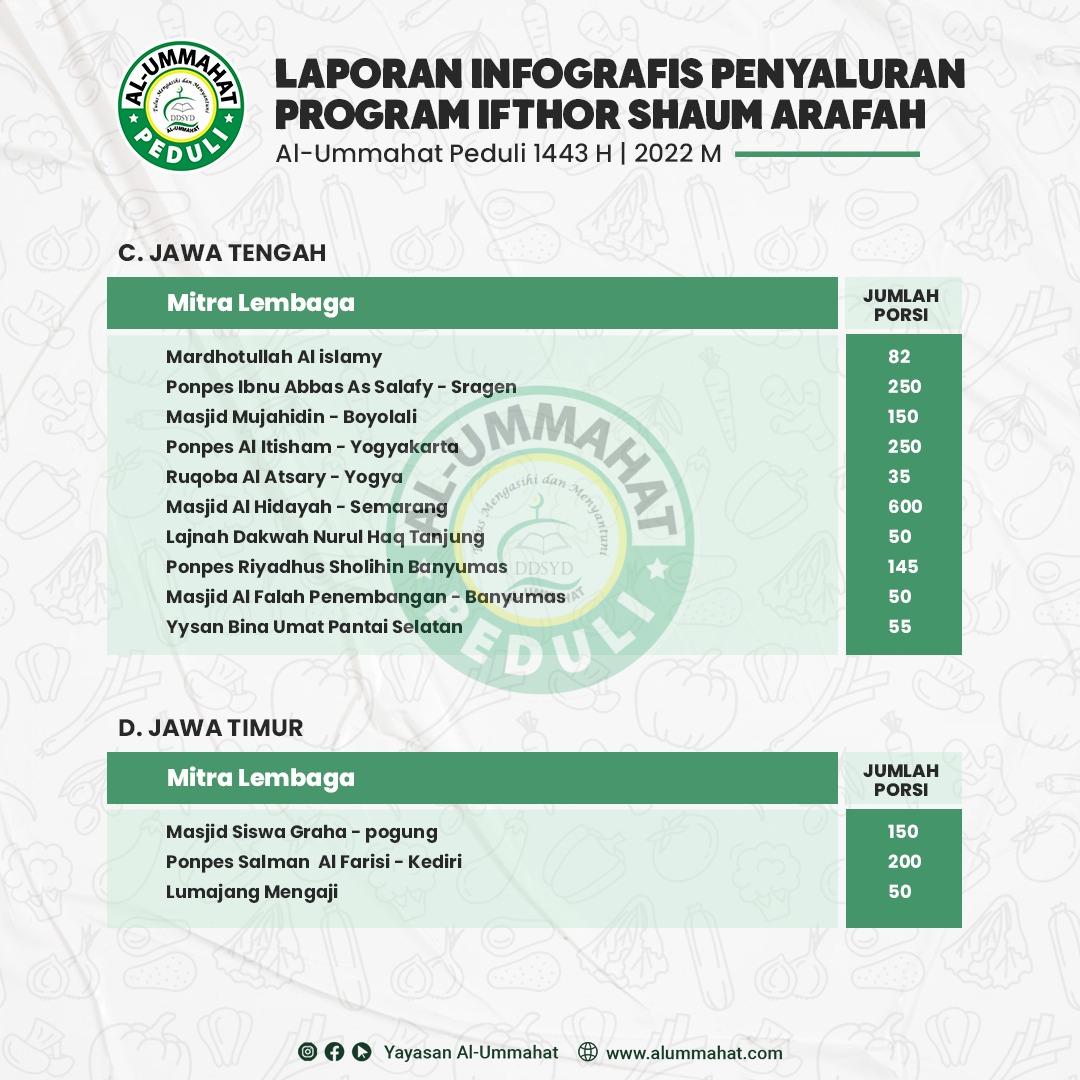Laporan Infografis Penyaluran Program Ifthor Shaum Arafah 1443 H Al-Ummahat Peduli