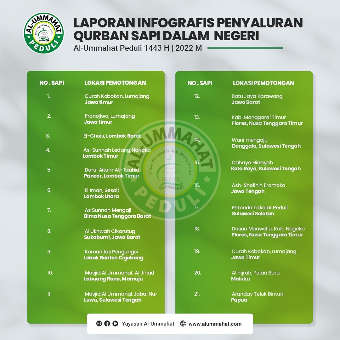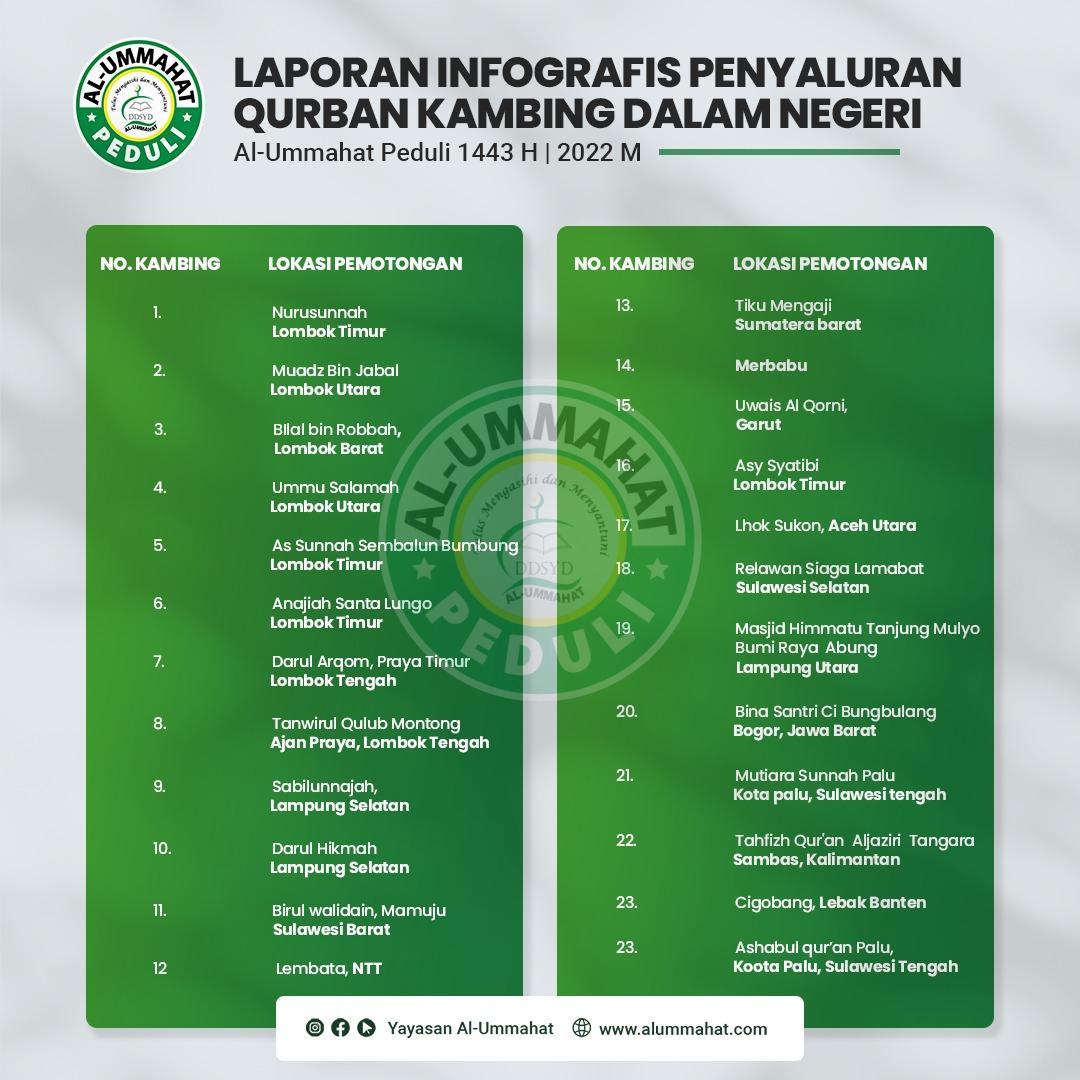 Laporan Infografis Penyaluran Qurban Dalam dan Luar Negri 1443 H Al-Ummahat Peduli